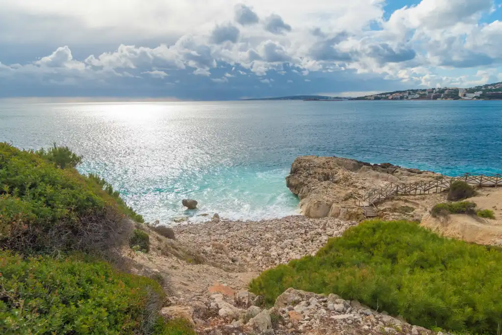 Caló des Grells est une petite plage avec un joli accès par des escaliers en bois. Il est situé sur la côte est de l'île de Majorque, aux Baléares, au bout du Paseo Marítimo en direction d'Andratx. C'est l'une des criques les plus spectaculaires et pittoresques de l'île, entourée de falaises et de forêts de pins. C'est un endroit parfait pour ceux qui recherchent une crique calme et peu fréquentée pour se détendre et profiter du soleil et de la mer car elle est propre et peu fréquentée.