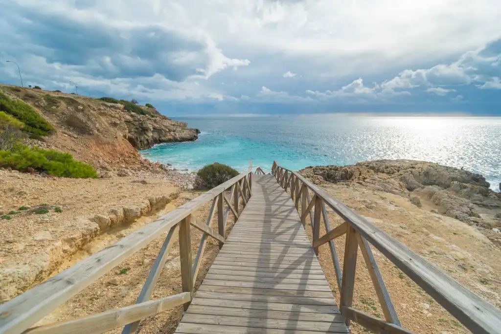 En plus de la plage, Caló des Grells est connue pour ses vues impressionnantes sur la mer et la côte. C'est un endroit idéal pour faire de la randonnée et profiter de la nature, avec des itinéraires qui traversent les forêts de pins et les falaises voisines.